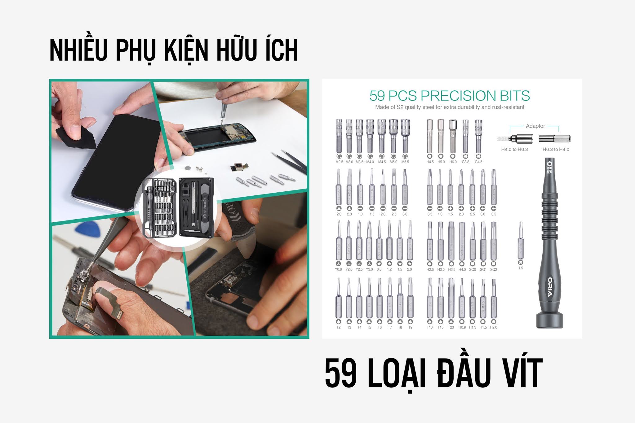 Trên tay Bộ tua vít đa năng Oria 69 món phụ kiện